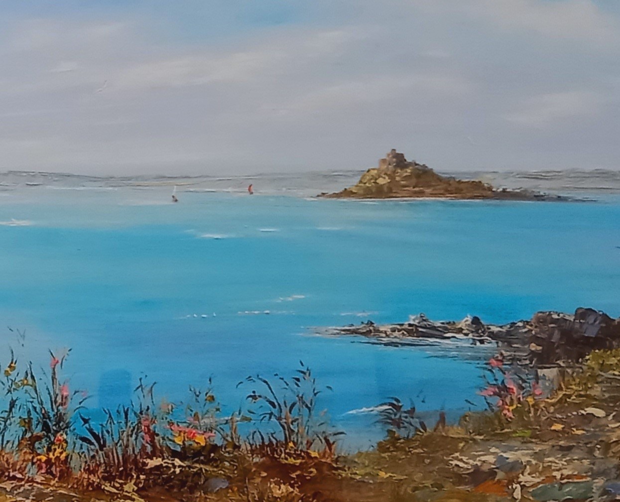 ‘Across the Bay’ St Michaels Mount from Perranuthnoe Coastal Path £70 Framed Dimensions 25″ x 13″https://gail-morris-art.square.site/product/Across-the-Bay-St-Michaels-Mount-Gail-Morris-Art/13