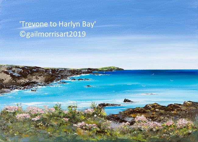 Trevone Coastal Path to Harlyn Bay – Framed prints £35 & £90 https://gail-morris-art.square.site/product/Trevone-to-Harlyn-Bay-framed-print/64