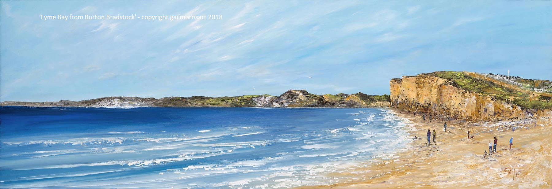 Limited edition prints available from an original oil painting depicting the Jurassic Coast from Lyme Regis to Burton Bradstock, taking in Lyme Regis, Charmouth, Golden Cap and Hive Beach. Prices start from £45 – £135