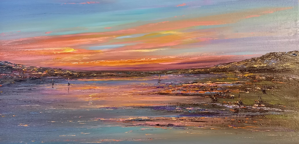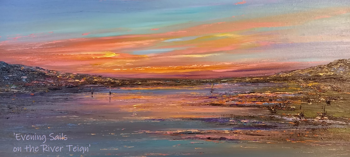 Evening Sails on the River Teign – original oi painting on a canvas block panel 600 x 500 x 20mm SOLD