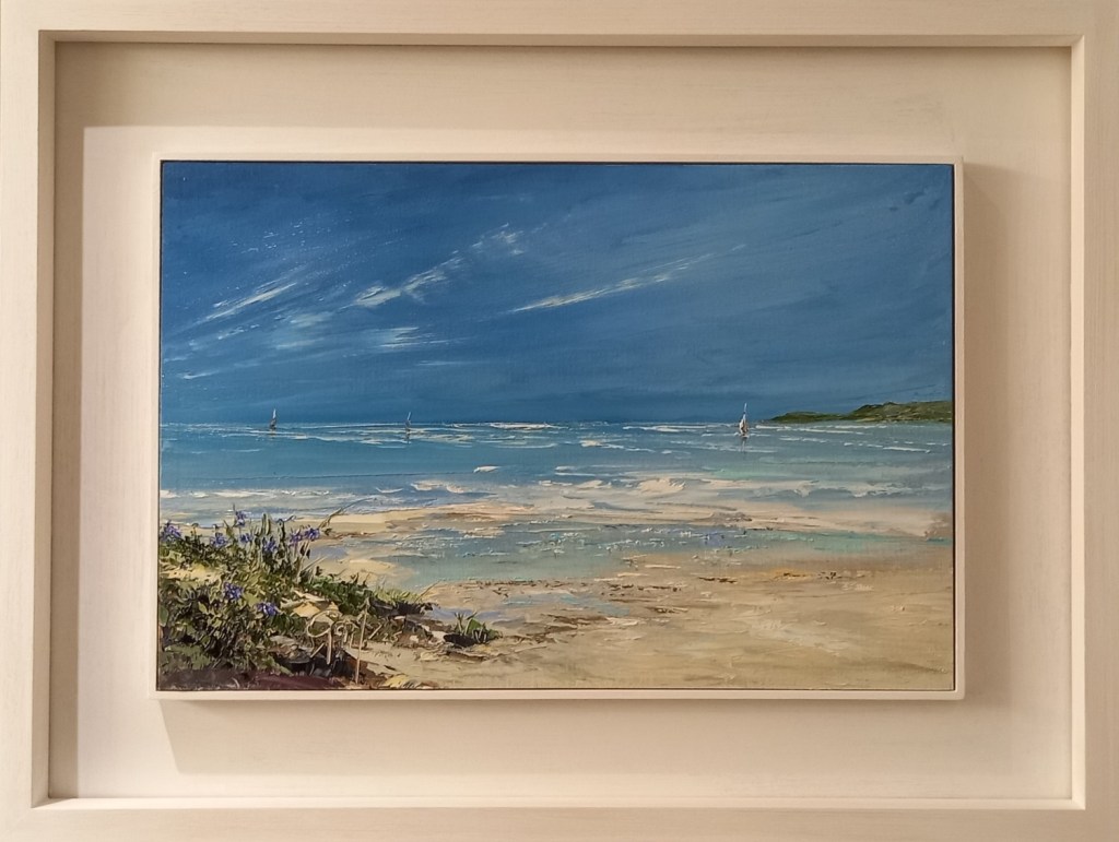 Original oil painting on canvas board (18″ x 12″) presented within a contemporary St Ives Gallery style frame. Overall Dimensions 25″ x 19″.