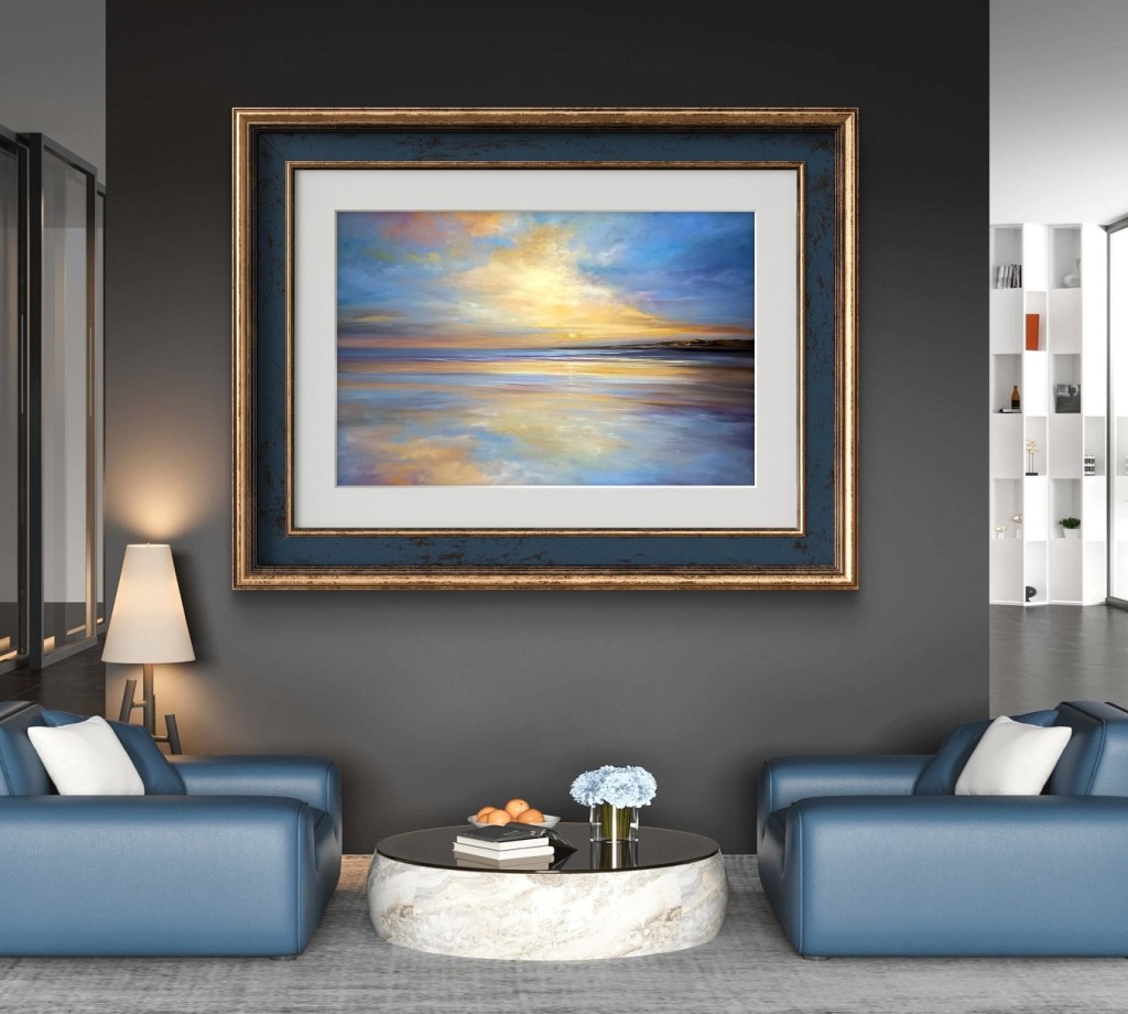 Experience the beauty of ‘The Golden Hour’ with this original seascape oil painting. Admire the stunning artwork, vibrant colours, and captivating brushwork that brings this piece to life. Add a touch of elegance to your space with this exquisite painting today. Sold unframed, framing for illustration purpose only.