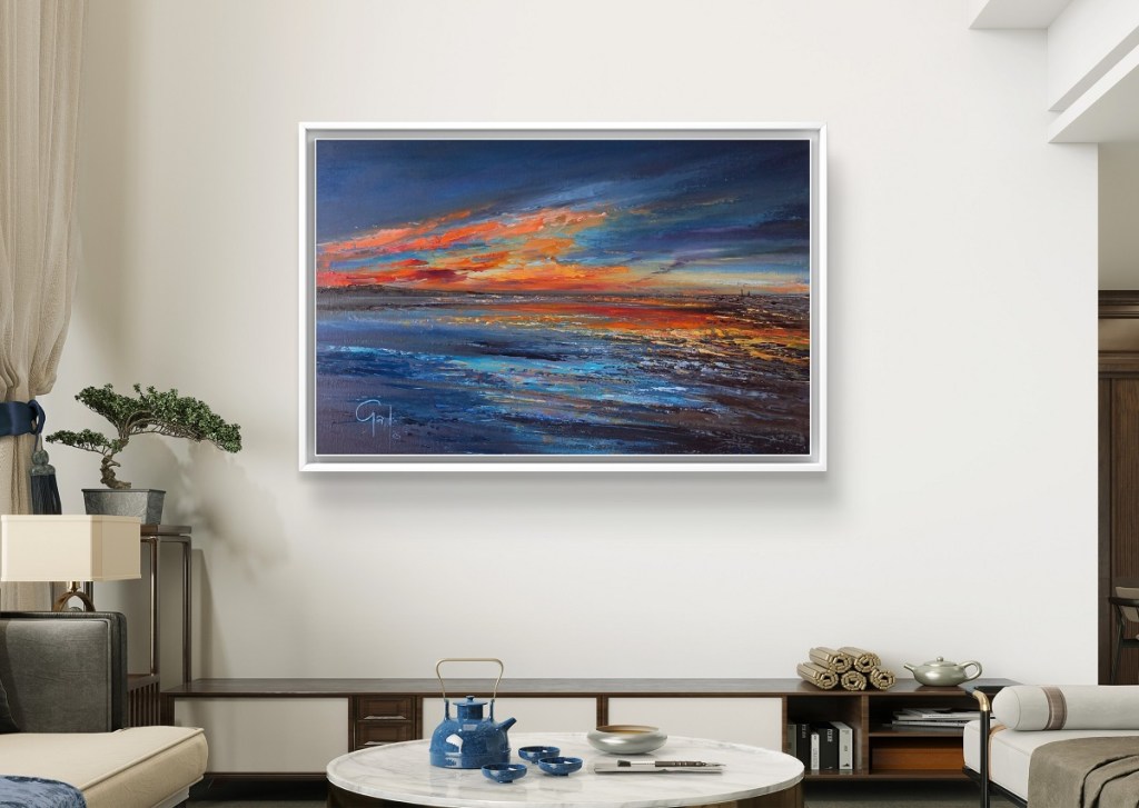 This unique and original oil painting on canvas panel is available unframed 18″ x 12″ £300 or framed with a St Ives gallery style frame 25″ x 19″ £395