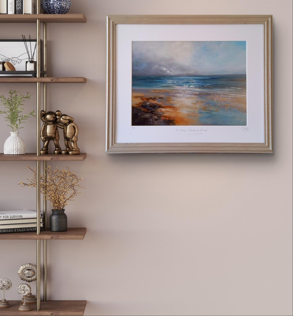 Enjoy the beauty of the Devon coast with this contemporary seascape limited edition print. This artist signed framed print will compliment any room in your home.
