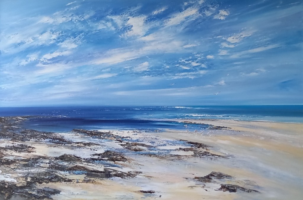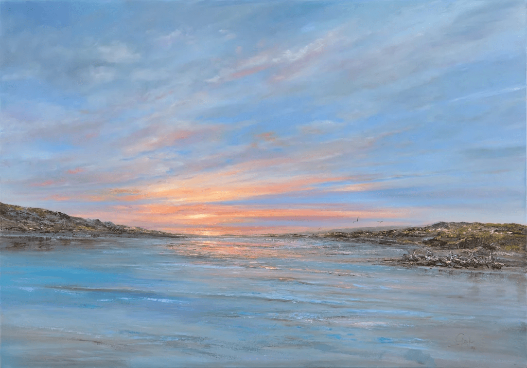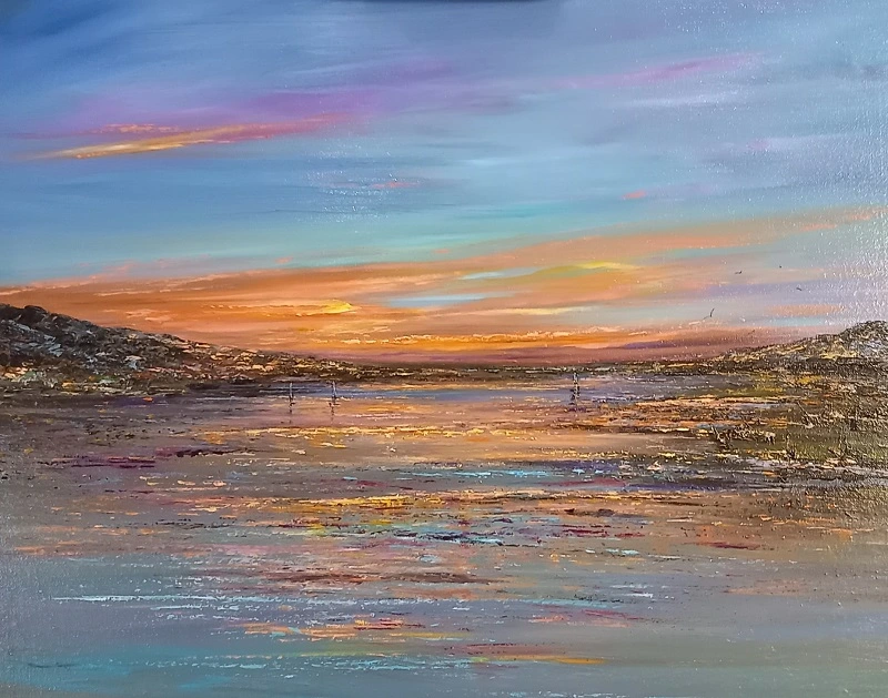 Reflections – Series 5 – Original oil painting on canvas panel block – ready to hang 1000 x 500 x 20 £SOLD Oystercatchers on the Sand Bars – Teignmouth – new original oil painting released November 13th – SOLD 13th November.Sunset over the River Teign – 800 x 600 x 40 – Released 4 .11 .2023 – SOLD 5.11.23Daybreak – Part of the Blue Series – Original oil Framed 25″ x 19″ NOW SOLD First Light – Original oil on canvas panel block – 800 x 600 x 40 £SOLD City Life – Large Abstract – SOLD Coastal Sea Pinks – Gwithian Towans, Cornwall 28″ X 24″ Framed – NOW SOLD Forever Scilly – Pelistry Bay, St Mary’s, Isles of Scilly Framed with white Frame 28″ x 24″ SOLD Agapanthus Drift – Isles of Scilly – original oil on canvas board 10″ x 8″ £ NOW SOLD Low Sun on the Sandbars – Teignmouth – Canvas panel block 30″ x 20″ x 1.5″ Original oil NOW SOLD Sun on the Sandbars at Teignmouth – canvas panel block 60cm x 42cm x 2cm SOLD ‘Heading Home’ – original oil framed dimensions 25″ x19″ SOLD Rising Tide – Teignmouth Beach – Framed dimensions 26″ x 14″ SOLDThe Fading Light – Teignmouth Beach & Groynes – Framed 26″ x 14″ Original oil SOLD‘Misty Blue’ – Stretched canvas block panel – original oil painting – 600 x 420 x20 mm . NOW SOLD Trevone – Cornwall original oil painting – SOLD Private CommissionHarlyn Bay Beach – Cornwall Original oil painting 100 x 50cm SOLD – PRIVATE COMMISSIONGig Practice at Gwithian, Cornwall – Original oil painting SOLD – PRIVATE COMMISSION