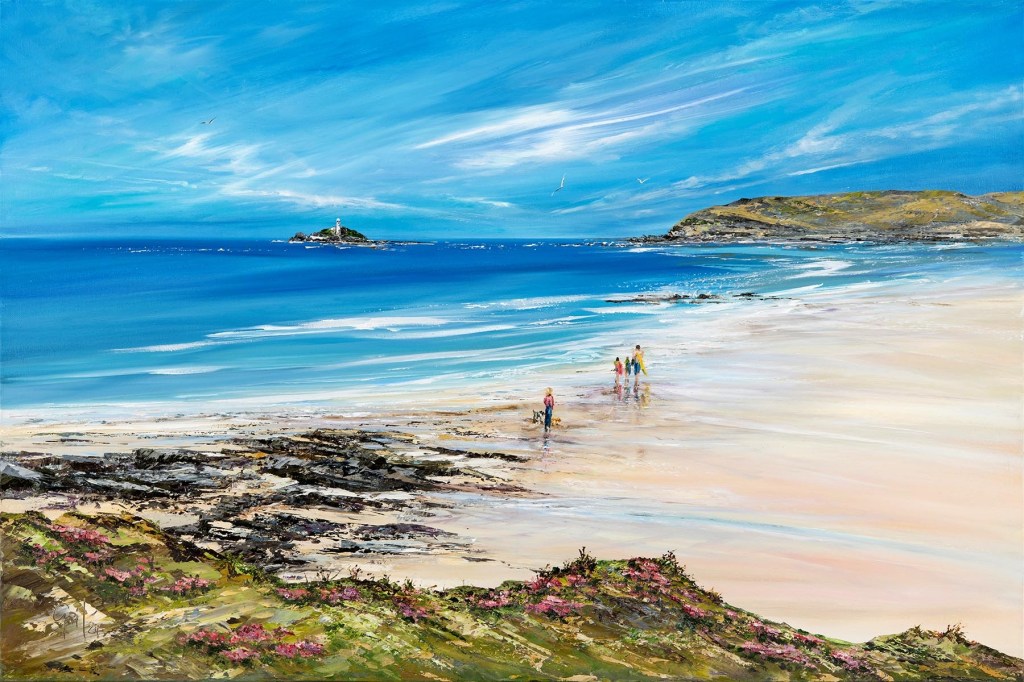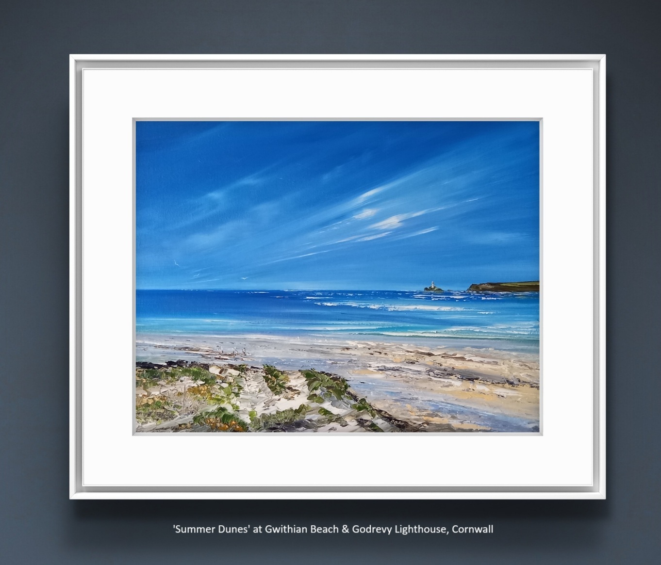 Godrevy Days – Series 2 – Large Oil on Canvas with white tray frame.