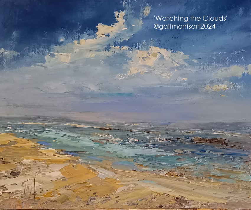 ‘Watching the Clouds’ (below) – Original mixed media/oil NOW SOLD